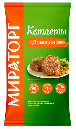 «Домашние» котлеты «Мираторг» – быстрое блюдо, ваша палочка-выручалочка, когда хочется вкусно и быстро пообедать или поужинать, всего несколько минут на сковородке - и быстрый ужин готов. «Мираторг» готовит котлеты по фирменному рецепту из отборного натурального фарша с добавлением специй и замораживает методом шоковой заморозки. Дополните котлеты любимым гарниром, отварным или жареным картофелем, гречкой, макаронами, овощами и, непременно, возьмите с собой на работу.