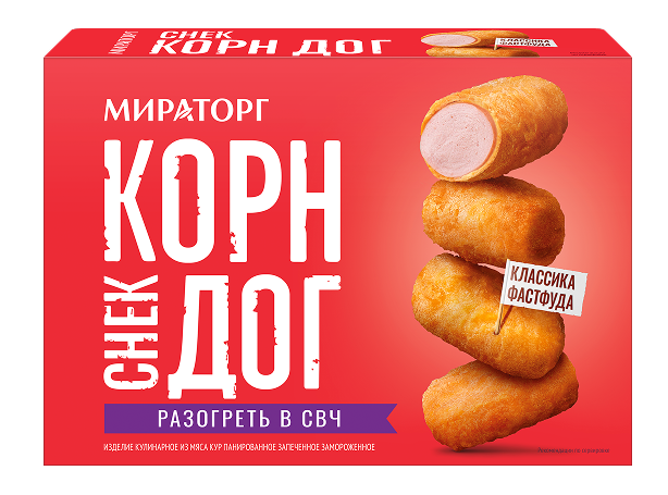 Ищете вкусные снеки для домашнего перекуса? Попробуйте Корн Дог от "Мираторг"! Сочная сосиска в золотистом румяном тесте - это эффектная горячая закуска, которая определённо, произведёт фурор.