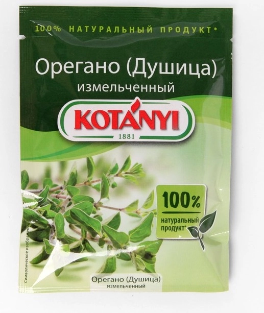 Орегано обладает пряным, чуть терпким и горьковатым вкусом. Это традиционный ингредиент средиземноморской кухни. Насыщенный эфирными маслами орегано Kotanyi придает блюдам насыщенный аромат и пряный вкус. Применение: для пиццы, томатного соуса, овощных и мясных супов, мясных блюд, салатов. Орегано хорошо сочетается с тимьяном, базиликом и розмарином