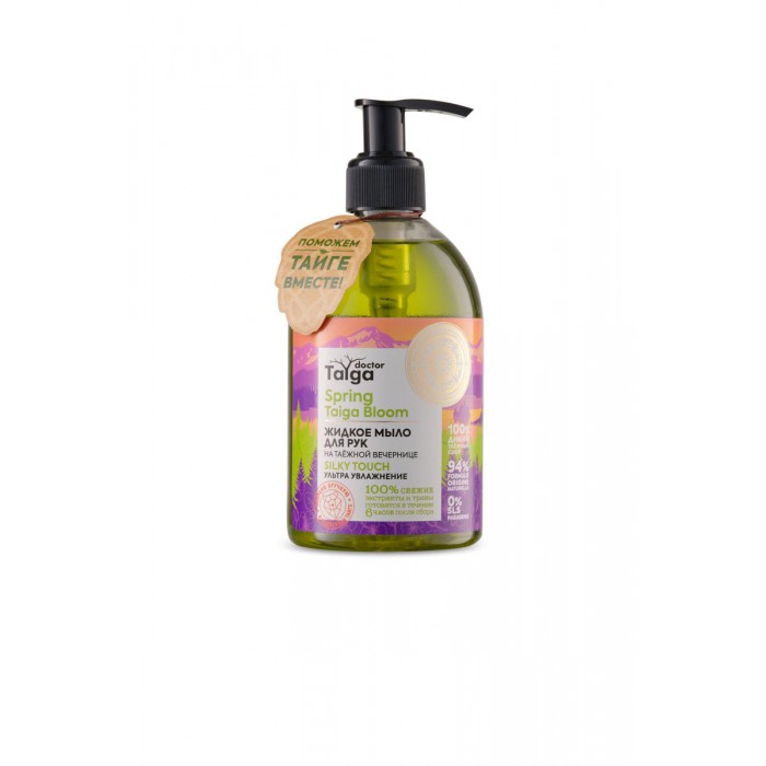 Жидкое мыло "Natura Siberica", для рук, «Ультра увлажнение» , 300мл. Натуральная моющая основа бережно очищает и интенсивно увлажняет кожу рук, способствует восстановлению естественного защитного барьера. Интенсивно увлажняет. Защищает от негативного воздействия окружающей среды. Подходит для сухой и чувствительной кожи. Таежная вечерница бережно очищает и увлажняет кожу, делая кожу бархатистой и нежной. Масло тувинской медуницы источник аминокислот, защищает чувствительную кожу рук от воздействий окружающей среды. D пантенол способствует регенерации и глубокому увлажнению. Нанести небольшое количество жидкого мыла на влажную кожу рук, вспенить, смыть теплой водой.