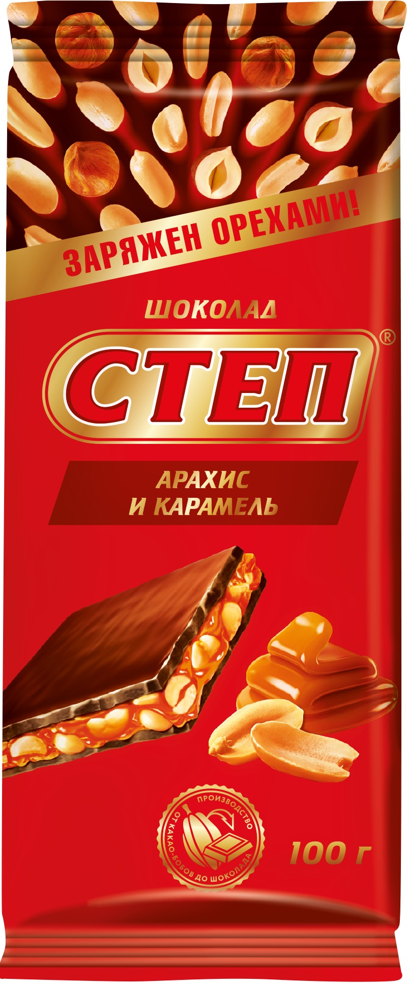Шоколад Степ молочный с начинкой арахис и карамель 100г Славянка Россия