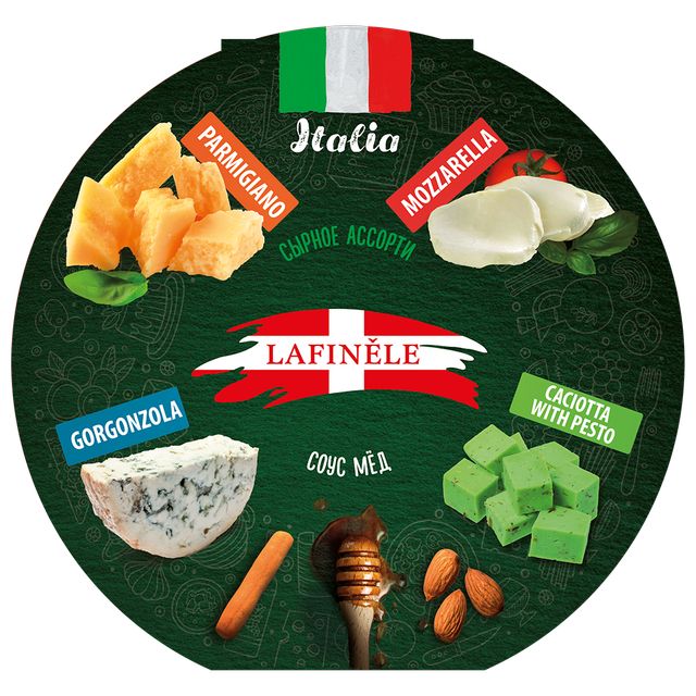 Итальянское сырное ассорти от бренда Lafinele — это премиальная тарелка, включающая в свой состав как мягкие, так и твердые сорта сыров. Они нарезаны тончайшим слоем, что делает такой продукт очень удобным для сервировки. Деликатесный набор можно подать не только в качестве закуски к праздничному столу, но и использовать для сытного завтрака или быстрого и легкого ланча.