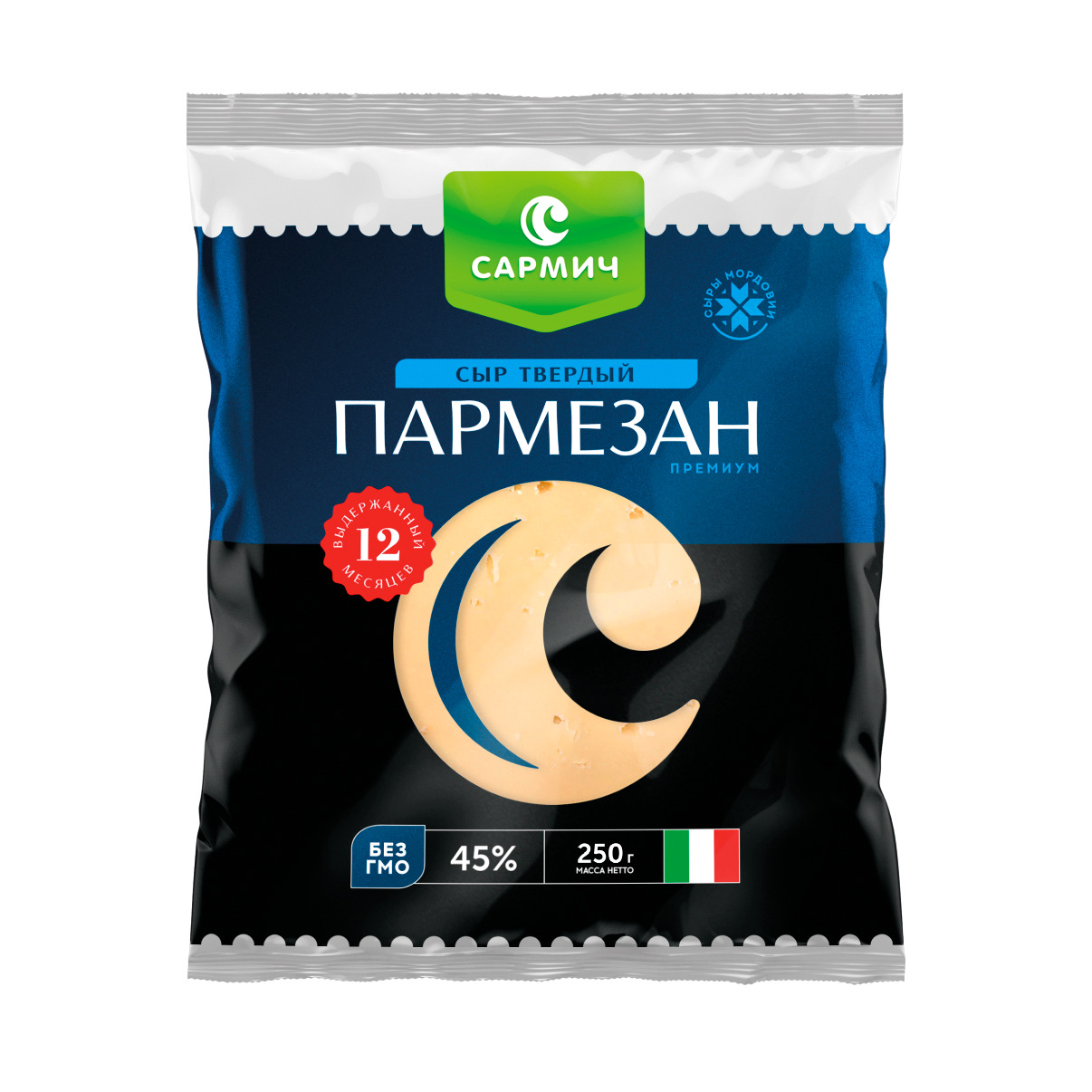 Сыр «Пармезан Премиум» - выдержанный сыр со сроком созревания не менее 12 месяцев. Именно время создает неповторимый вкус и аромат этого сыра. Благодаря высокой плотности его можно натереть очень тонко, воздушной стружкой тоньше бумаги. Под воздействием высокой температуры пармезан равномерно плавится, быстро покрывается золотистой корочкой при выпечке и красиво застывает. Благодаря всем этим качествам Пармезан пригодится в приготовлении множества салатов и горячих блюд. Прекрасно сочетается с фруктами и медом.