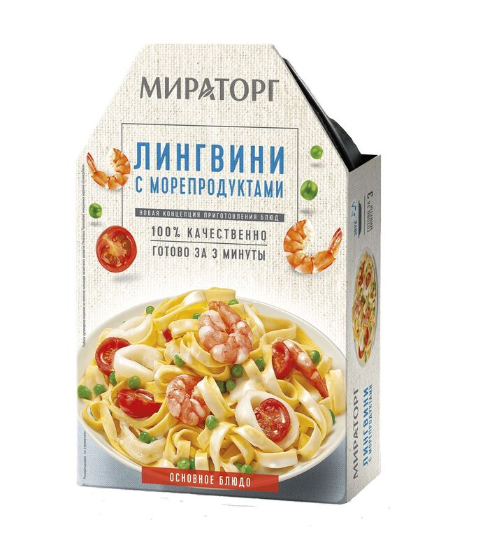 Эта паста поможет вам отправиться в настоящее гастрономическое путешествие прямо за обедом. Лингвини из твердых сортов пшеницы мы дополнили соусом из натуральных сливок и смесью морепродуктов, состоящей из полосок кальмаров и очищенных королевских креветок. Дополнительный шарм готовому блюду придают зелёный горошек и томаты.