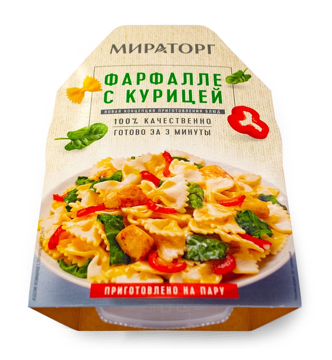 Классическая паста с легким сливочным акцентом. В основе блюда - отборная куриная грудка и фарфале из твёрдых сортов пшеницы. Приготовлено в аппетитной заправке из сливок, дополненной свежим шпинатом и сладким перцем.