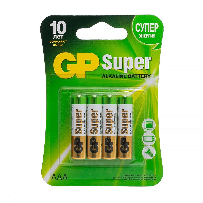 Батареи GP серии SUPER являются надежными источниками питания, которые можно использовать в электроприборах с широким диапазоном токов. Это может быть мощная осветительная аппаратура, портативные видеосистемы, профессиональные радиостанции, детские электронные игрушки.