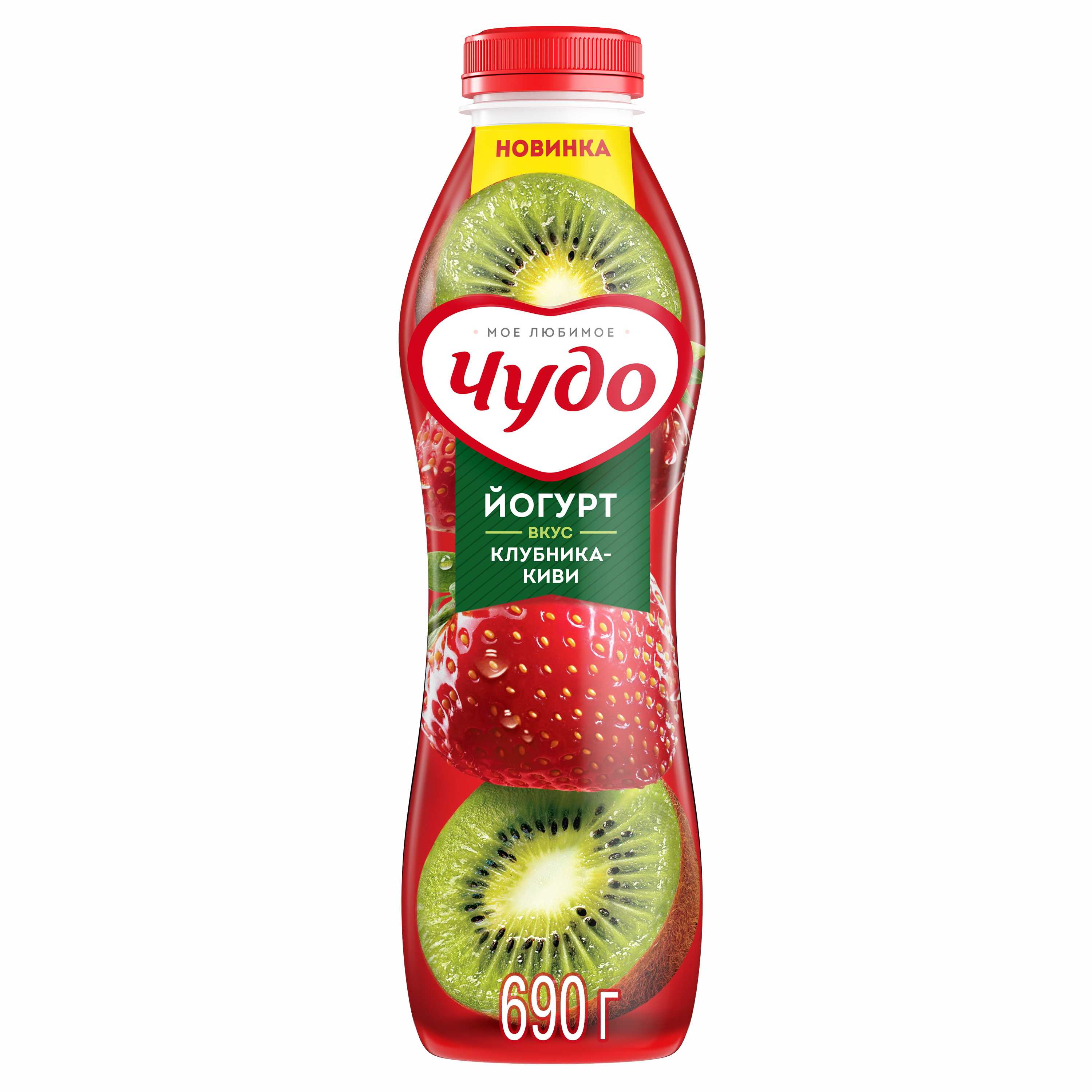 Питьевой йогурт "Чудо" в большой бутылке с фруктовыми и ягодными вкусами