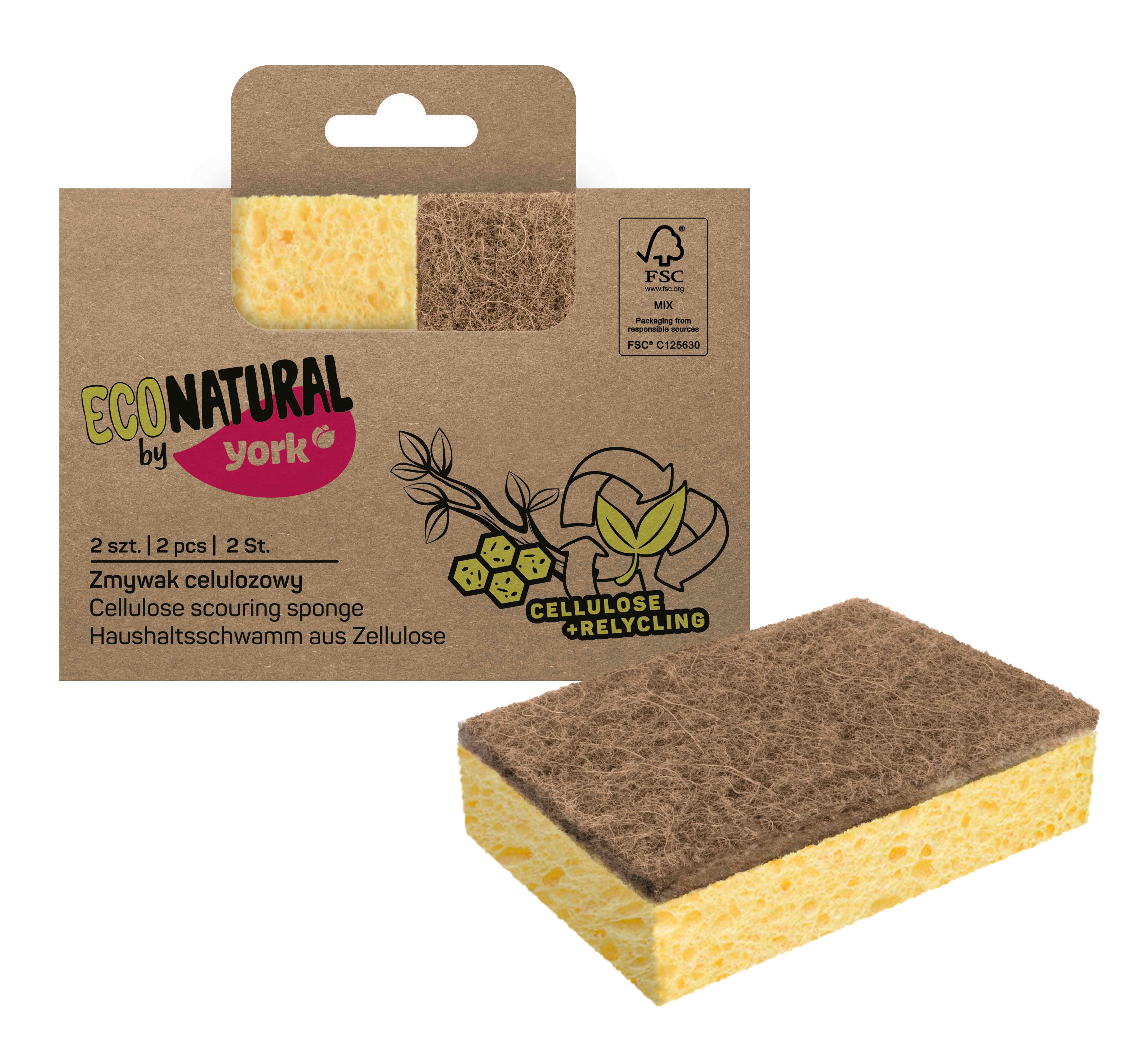 Губки для посуды целлюлозные YORK ЭКО Натурал 2шт.