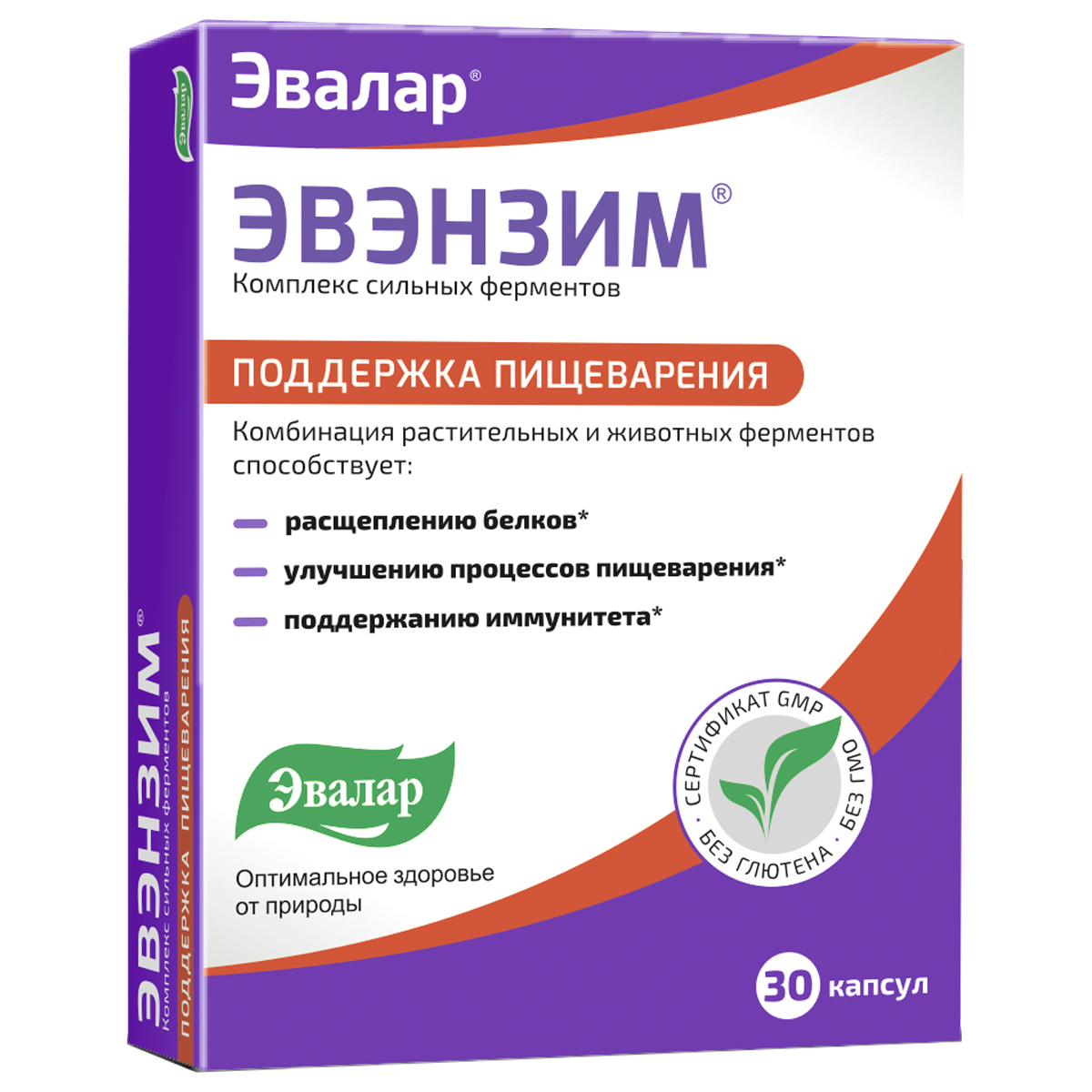 Эвэнзим представляет собой комбинацию высокоэффективных энзимов растительного и животного происхождения.
