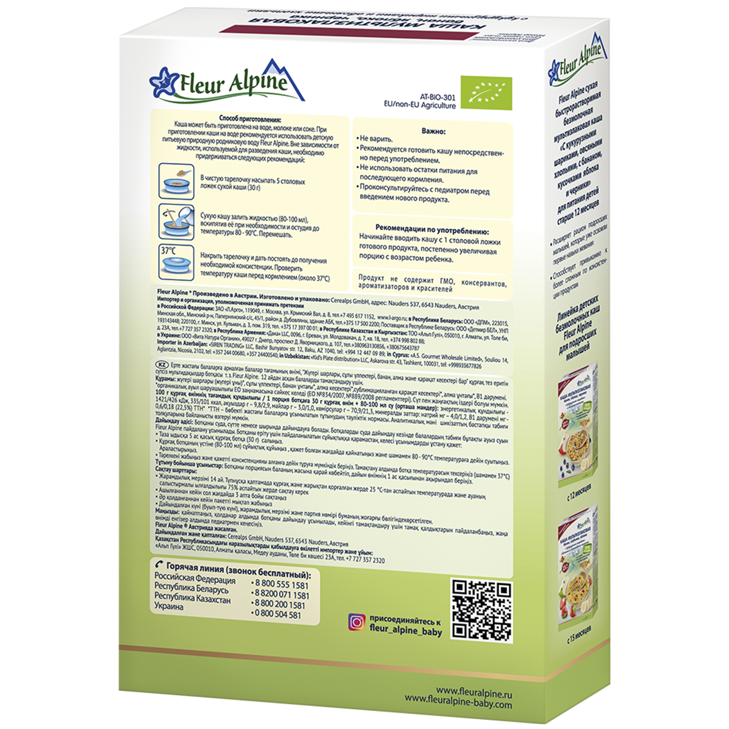 Каша Fleur Alpine мультизлаковая с бананом, яблоком и черникой с 12 месяцев 200г