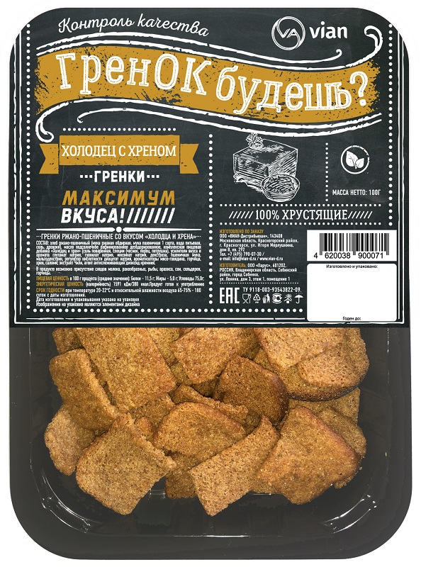 Золотистый цвет обжаренных гренок достигается за счет идеально сбалансированного режима обжарки нарезанного хлеба в высококачственном растительном масле с высокой степенью отжима.
