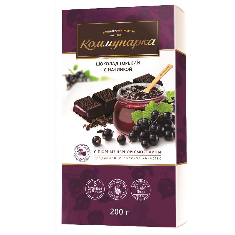 Шоколад горький с пюре из черной смородины 200г Коммунарка