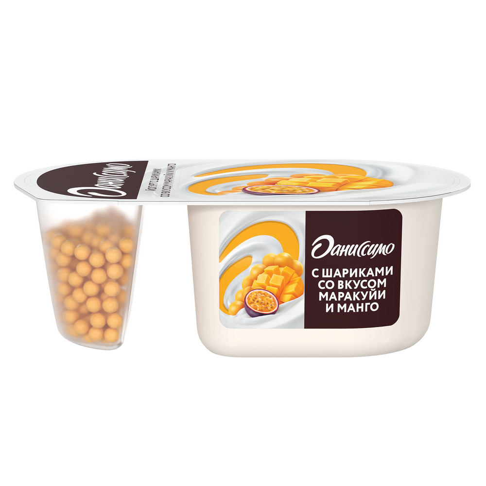 Побалуйте себя молочным лакомством от Даниссимо! Нежный йогурт подчеркивает хрустящую текстуру шариков со вкусом маракуйи и манго. Насладитесь моментом вместе с Даниссимо! Этот вкус не только напомнит вам о лете, но и подарит вдохновение в каждой ложечке.