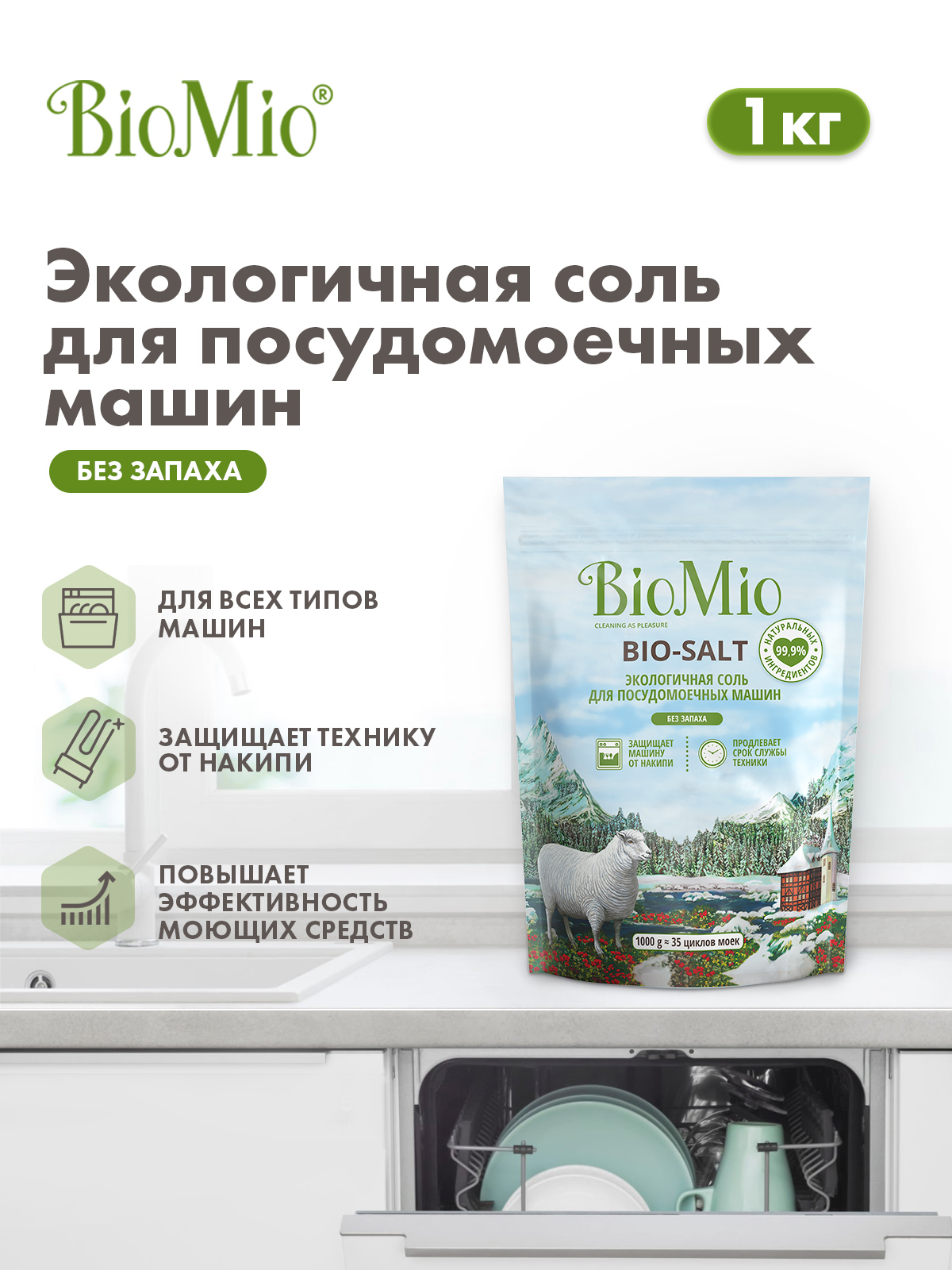 Экологичная соль для посудомоечных машин BIO-SALT смягчает воду, предотвращает образование известкового налета на посуде и скапливание накипи на посудомоечной машине, продлевая срок службы посудомоечной машины. Подходит для всех типов и марок машин в домах с автономной канализацией.