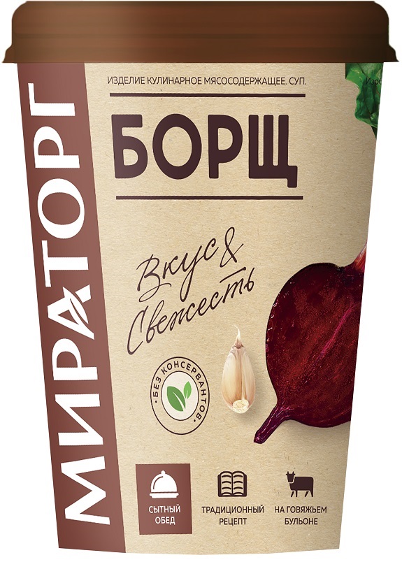 Традиционные домашние рецепты. Оптимальный срок годности — 21 сутки. Быстрая пастеризация позволяет сохранить насыщенный вкус. Возможность разогрева продукта в стакане в СВЧ. Ассортимент для любого потребителя. На фермерских бульонах: натуральных и наваристых. Большой формат- полноценный прием пищи.