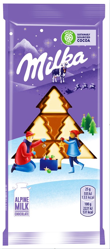 Шоколад молочный MILKA Милка с белым шоколадом в виде елочек, 100г