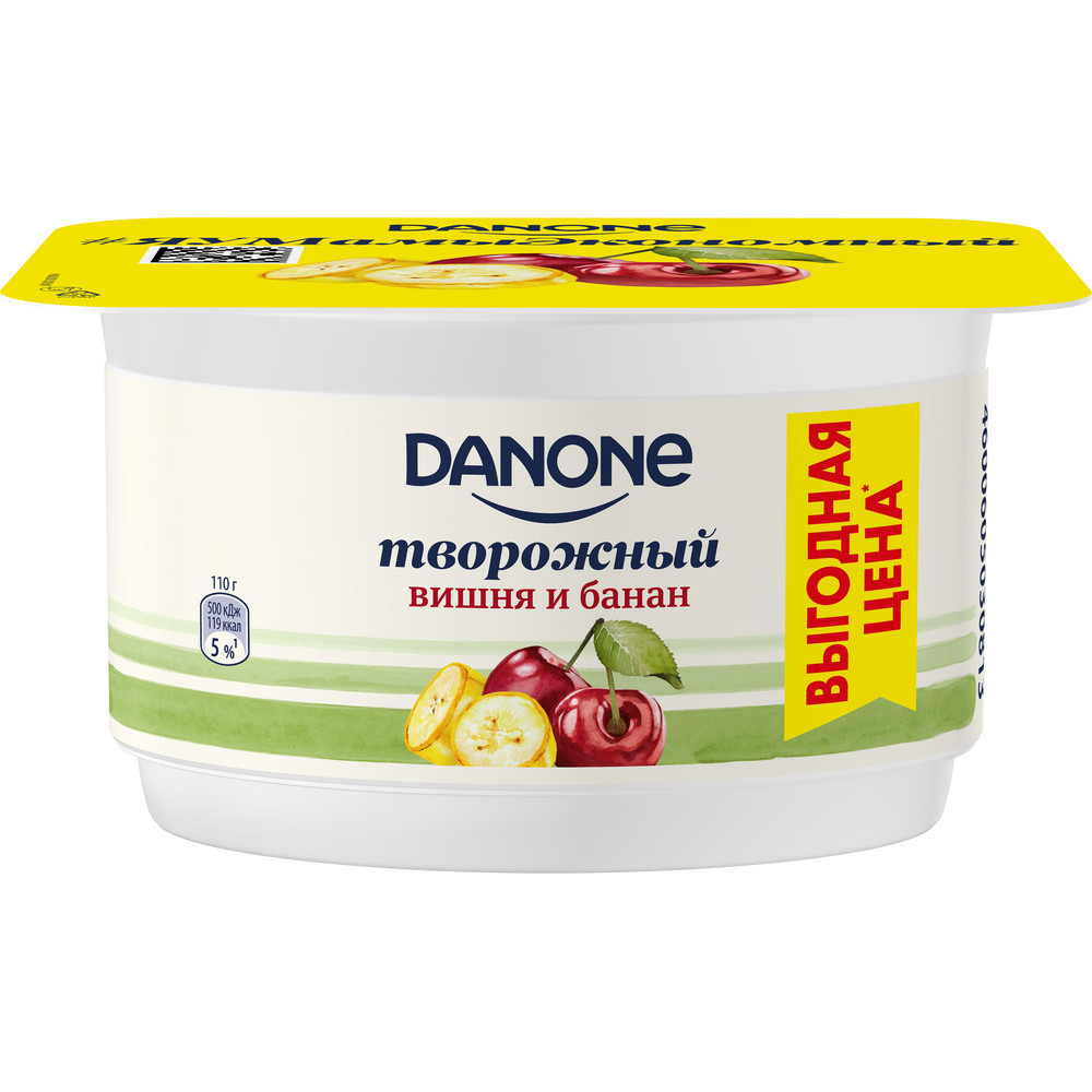 Попробуйте новый творожок Данон в формате 110г - невероятное сочетание творога, сливок и вишни с бананом!