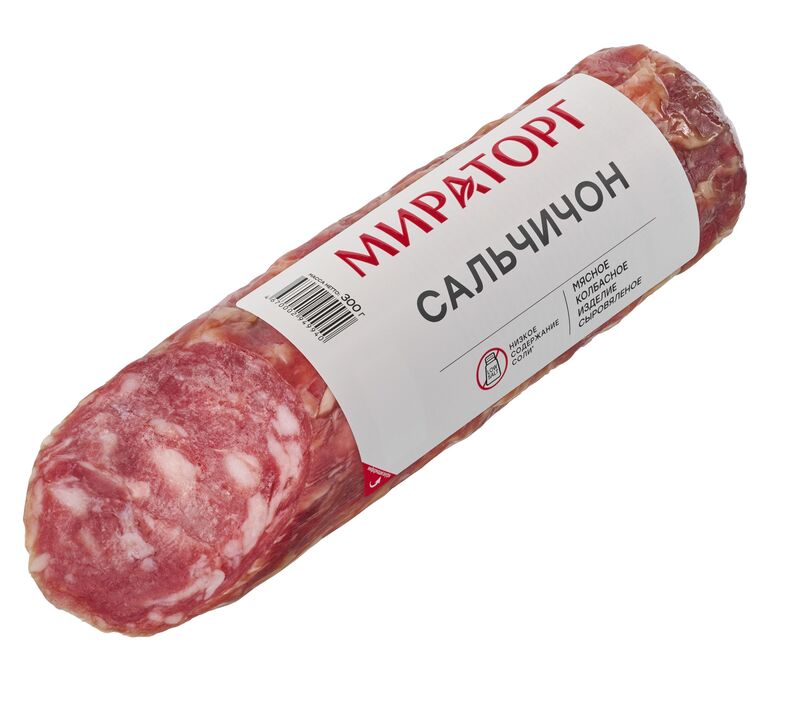 Сыровяленая колбаса «Сальчичон» обладает ярким, насыщенным мясным вкусом с тонким ароматом копчения. Изготавливается из отборного мяса собственного производства с добавлением шпика и специально подобранных пряностей.