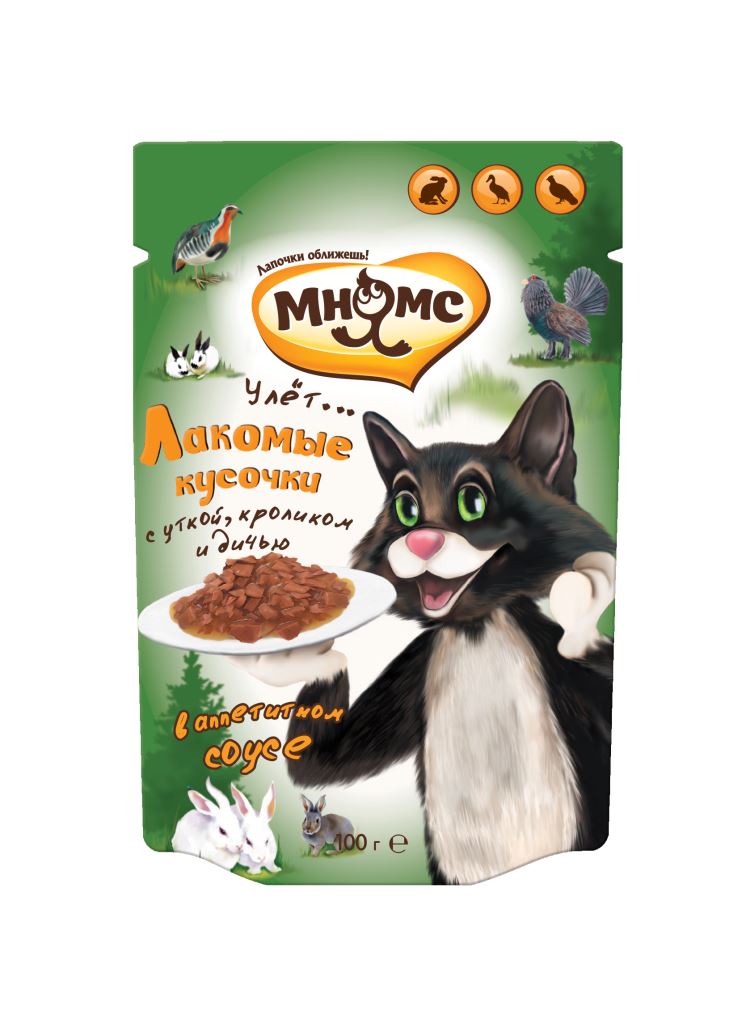 Паучи для взрослых кошек Пир охотника утка/кролик/дичь Мнямс Лихтенштейн