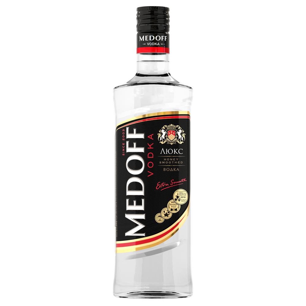 Водка «Medoff Люкс» — самая популярная водка в линейке MEDOFF. Кроме использования технологии очистки и смягчения медом, рецептура этой водки предусматривает добавление пчелиного молочка, придающего вкусу легкие кисло-острые ноты. Англичане называют этот ценный продукт пчеловодства «Royal Jelly» — дословно «королевское желе». Таким образом, не будет большим преувеличением называть MEDOFF Люкс «королевской водкой».