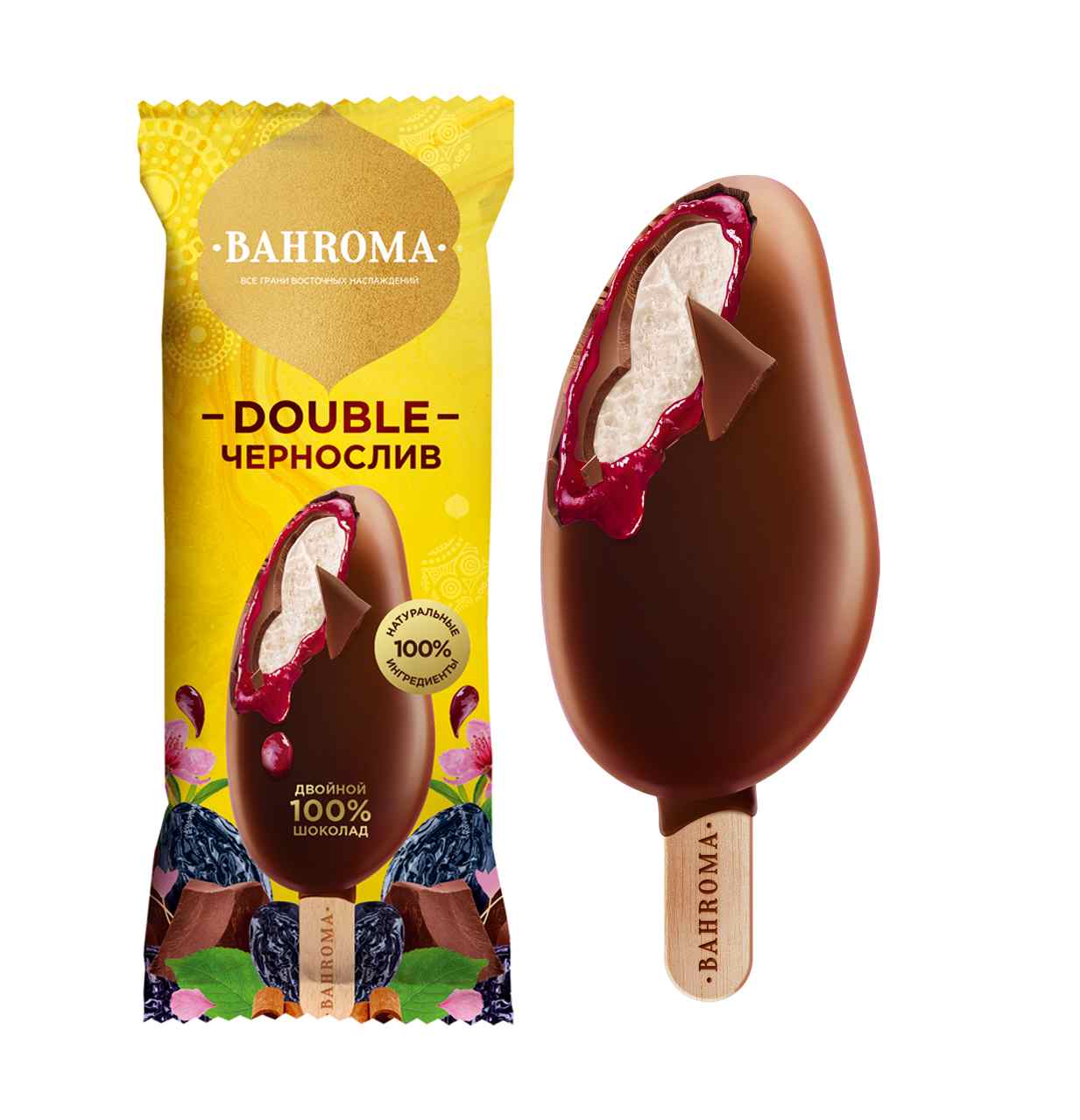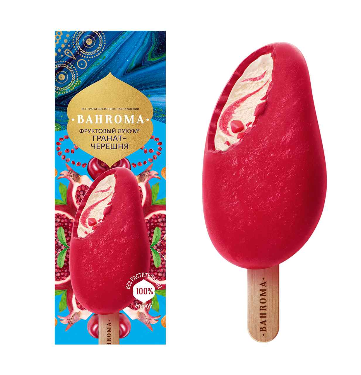 Мороженое эскимо сливочное Bahroma гранат-черешня во фруктовой глазури 75г