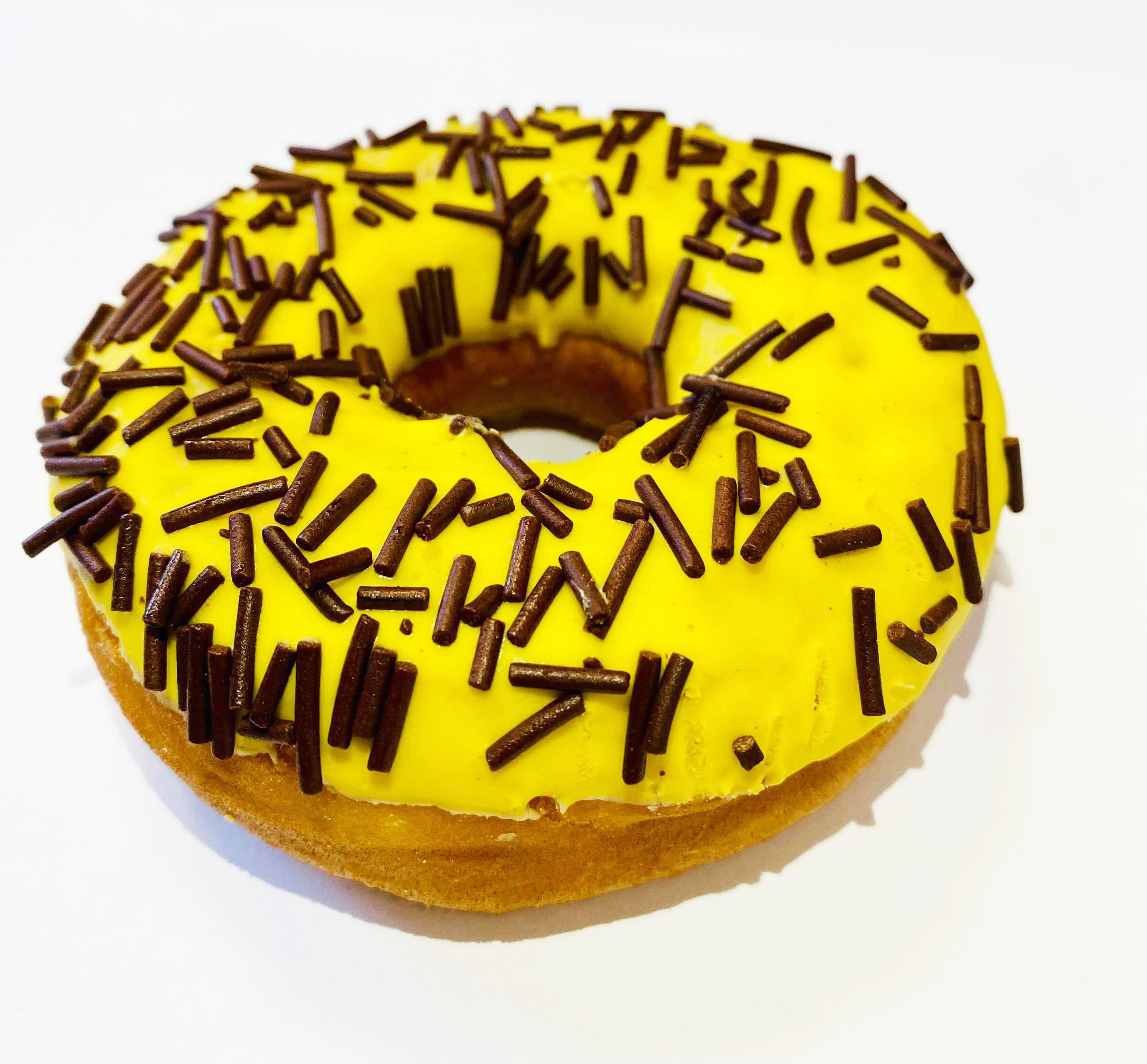 мука пшеничная хлебопекарная высшего сорта , вода питьевая, начинка со вкусом банана (сахар, (сахароза, лактоза), молоко обезжиренное, загуститель Е1442, сливки, заменитель молочного жира (масла растительные рафинированные, дезодорированные ,в том числе гидрогенезированные, переэтерифицированные: пальмовое, подсолнечное), ароматизатор пищевой «Банан», консервант сорбат калия, красящий ингридиент-экстракт сафлора), глазурь кондитерская (сахар, заменитель масла какао лауринового типа( масло пальмоядровое рафинированное дезодорированное гидрогенезированное), эмульгаторы (Е492,Е322), ароматизаторы («Ванилин», «Сливки»), краситель Аквабетин Бета-каротин 0030М, регулятор кислотности –лимонная кислота, соль, эмульгаторы (Е322,Е476)), посыпка сахарная декоративная темная (сахар, заменитель масла какао лауринового типа (масло пальмоядровое рафинированное дезодорированное гидрогенезированное ,эмульгаторы (Е492,Е322), какао-порошок, эмульгаторы(Е476,Е322), ароматизатор «Ванилин», патока, крахмал картофельный, регулятор кислотности-лимонная кислота), сахар, маргарин твердый (рафинированные дезодорированные растительные масла, вода питьевая, эмульгаторы (моно- и диглецириды жирных кислот), соевый лецитин, соль, краситель натуральный Бета-каротин, регулятор кислотности-лимонная кислота), дрожжи хлебопекарные прессованные, масло подсолнечное рафинированное дезодорированное, соль.