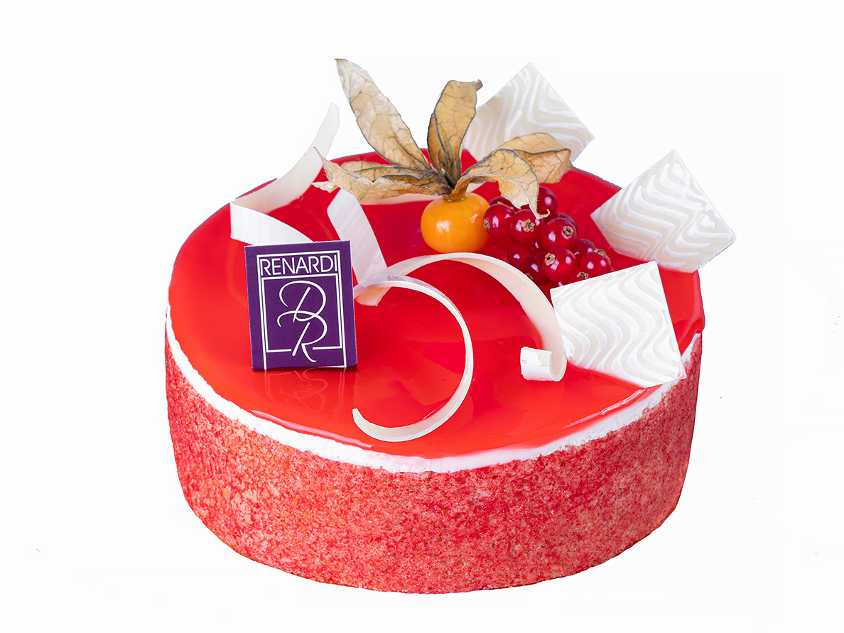 Два воздушных бисквита промоченные сахарным сиропом с клубникой, нежнейший мусс из йогурта клубники и персик-маракуйя, украшен клубничным гляссажем, шоколадным декором, свежей ягодой.