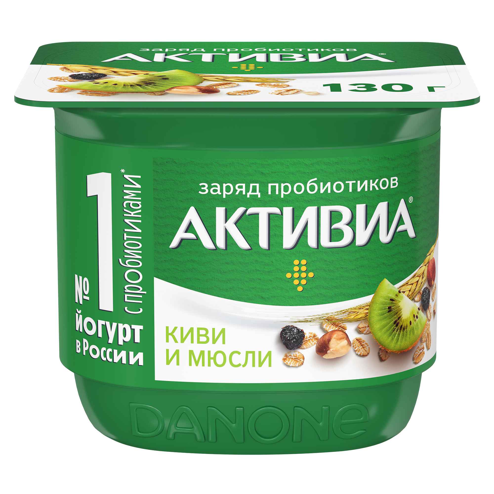 Биойогурт киви и мюсли Активиа отличается ярким вкусом! В составе — киви, изюм, ржаные отруби, мед, овес, пшеница, ячмень и фундук. Вся польза злаков и орехов в сочетании с кисло-сладким вкусом киви! Этот продукт содержит 100% натуральные ингредиенты. А миллиарды пробиотиков в каждой баночке Активиа способствуют комфортному пищеварению. В меру сладкий йогурт прекрасно подходит как для завтрака, так и для легкого перекуса в течение дня. Активиа - №1 биойогурт в России.