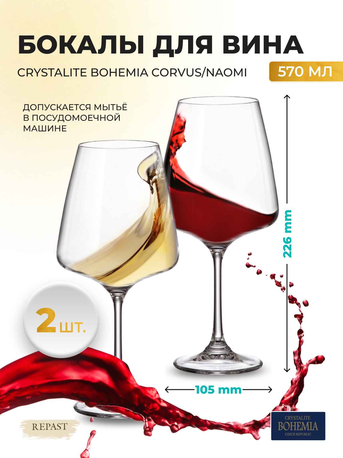 Набор бокалов для вина Crystalite Bohemia Corvus/naomi 450 мл(2 шт)