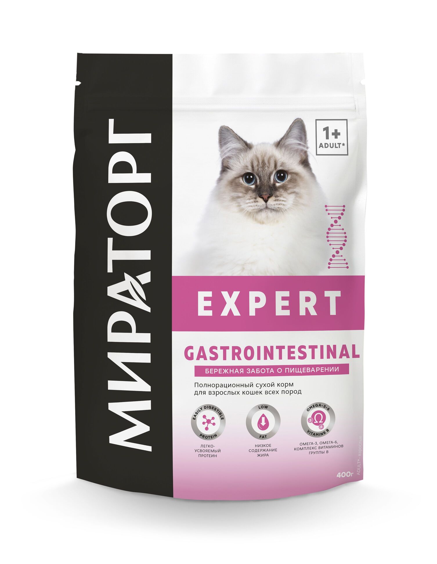 Мираторг Expert - профессиональная линейка кормов, созданная на базе современных научных исследований в нутрициологии. Сбалансированные рационы Мираторг Expert помогают вашим питомцам поддерживать здоровье и жизненную энергию. Gastrointestinal – ветеринарная диета, для защиты пищеварительной системы, которая способствует нормализации работы желудочно-кишечного тракта.