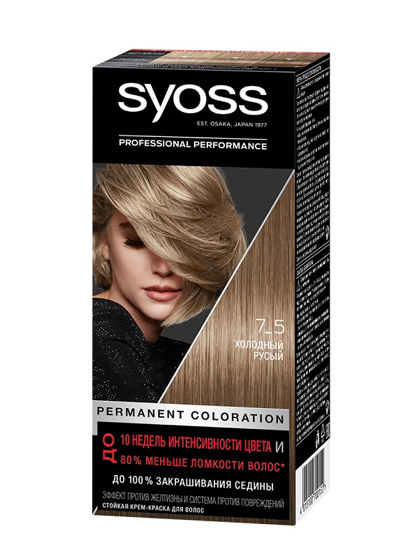 Стойкая крем-краска для волос Syoss Холодный русый 7_5 с концентрированными цветовыми пигментами и системой против повреждений. Пигменты красителя глубоко проникают в волокна волоса, позволяя добиться интенсивности цвета до 10 недель и профессионального закрашивания седины. Ухаживающая технология Salonplex реставрирует повреждённые связи в структуре волоса и восстанавливает волосы изнутри. Формула с кератином покрывает кутикулу волос, делая их более мягкими и гладкими. Для визуально улучшенного качества волос* и до 80% меньше ломкости волос*. Подходит для волос от каштановых до чёрных оттенков. Для волос с любым содержанием седины. Стойкое окрашивание.
