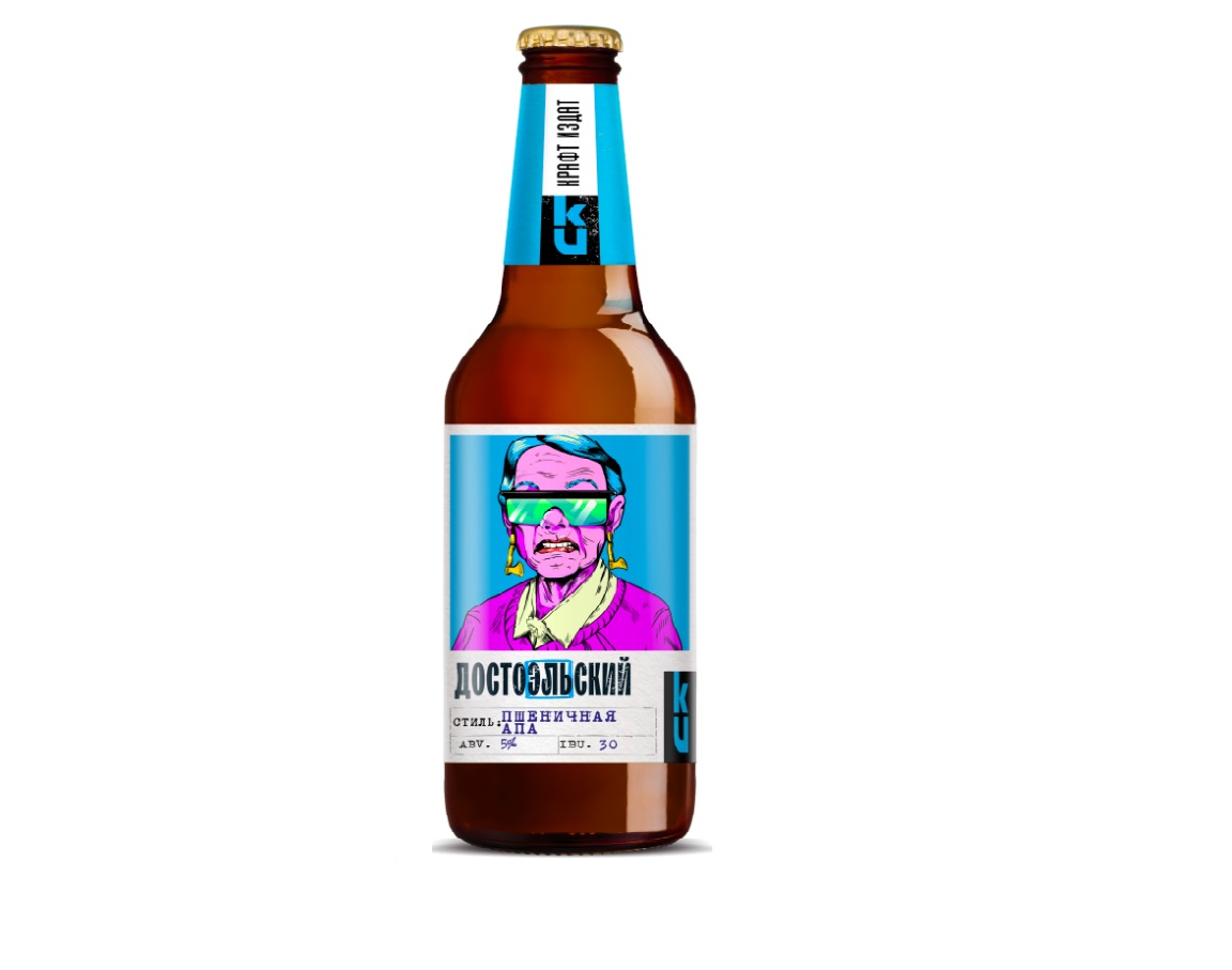 Пивной напиток "ДостоЭЛЬский" нефильтрованный осветленный пастеризованный, 5%, стеклянная бутылка 0,45 л