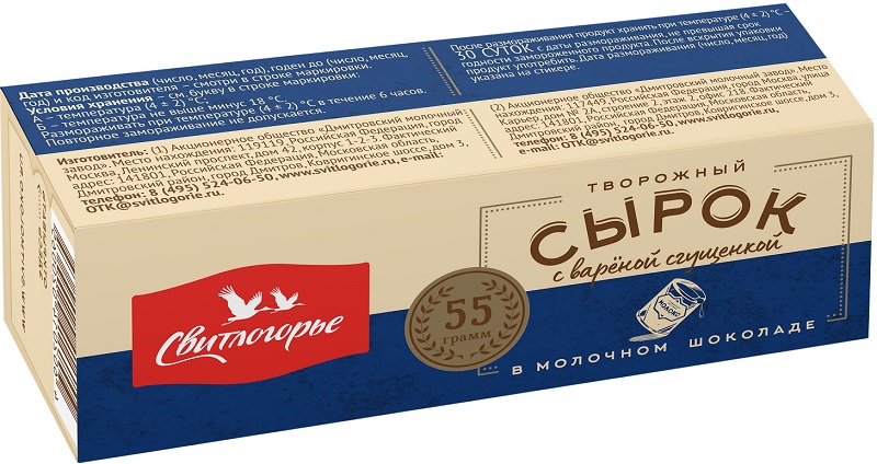 Сырок творожный с вареной сгущенкой в молочн шоколаде 26% 55г Свитлогорье Россия