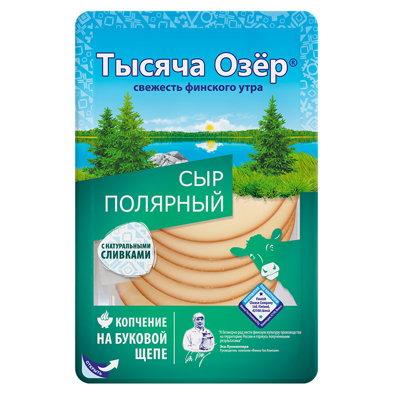 Сыр, вдохновленный самим Севером… Народам Севера свойственна не только практичность, но также желание радовать себя и близких особенными деликатесами. Одной из главных визитных карточек этого сурового региона являются традиции натурального копчения продуктов, в том числе сыров. Сыр Полярный был вдохновлен Северным Сиянием. Его вкус и аромат так же переливаются многогранными красками от нежных сливочных оттенков до ярких копченых нот. Копчение происходит в специальной коптильной камере методом пародымогенерации. Дым формируется путем тления натуральной буковой щепы. При копчении не используются ароматизаторы, такие как жидкий дым. С добавлением натуральных сливок, без ароматизаторов, красителей и консервантов