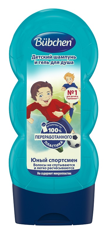 Шампунь и гель для душа «Юный спортсмен» 2 в 1 мягко очищает. Он рН - нейтрален для кожи и сохраняет естественный защитный барьер нежной детской кожи. Для ежедневного ухода за кожей и волосами. Без спутанных волос, без слез.