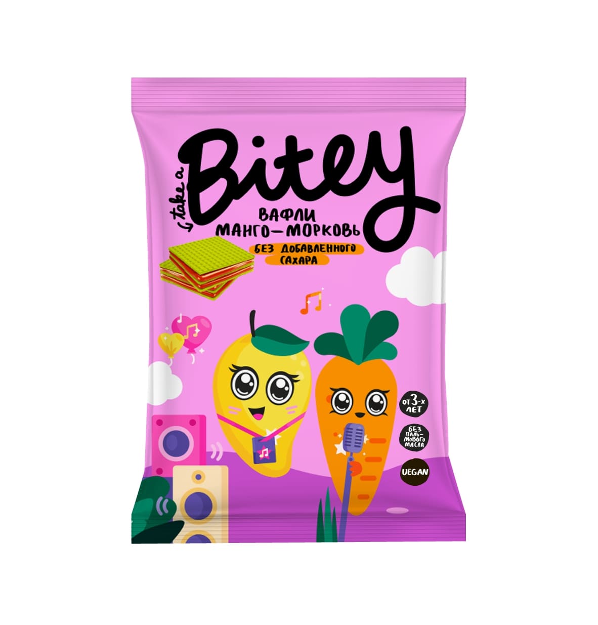 Вафли Bitey с манго и морковью - это вкусное и полезное лакомство для всей семьи. Продукт совсем не содержит добавленного сахара, консервантов и искусственных красителей. Зато в нем много натуральных фруктов и овощей, которые поддерживают иммунитет! А еще эти вафли невероятно красивого зеленого цвета! В качестве красителя мы используем настоящий суперфуд и кладезь полезных микроэлементов - 100% натуральный хлорофилл. Благодаря удобной упаковке вафли Bitey можно брать с собой на прогулку, в поездку или угощать друзей на празднике. Каждая вафля в индивидуальной упаковке.
