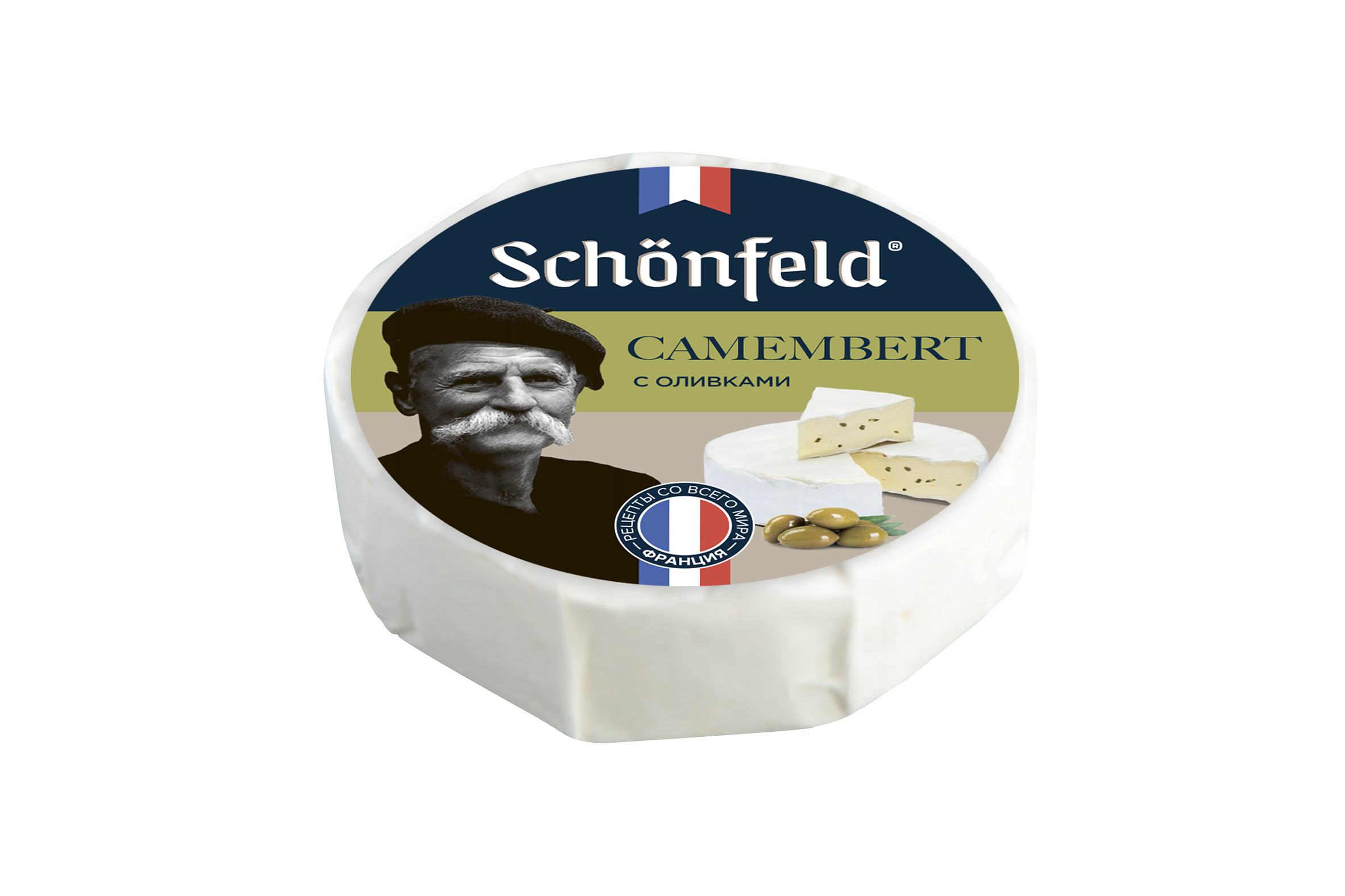 Camembert Schonfeld - изготовлен по традиционному французскому рецепту, обладает мягким, богатым сливочным вкусом и ореховым послевкусием, особую пикантность сыру придают оливки. Благодаря белой плесени аромат деликатеса содержит в себе нежный оттенок лесных грибов. Чем спелее становится сыр, тем насыщенней в аромате чувствуется сливочный аромат. Camembert является неотъемлемой частью сырных тарелок, прекрасно сочетается с выдержанным вином, орехами, зеленым виноградом и медом.