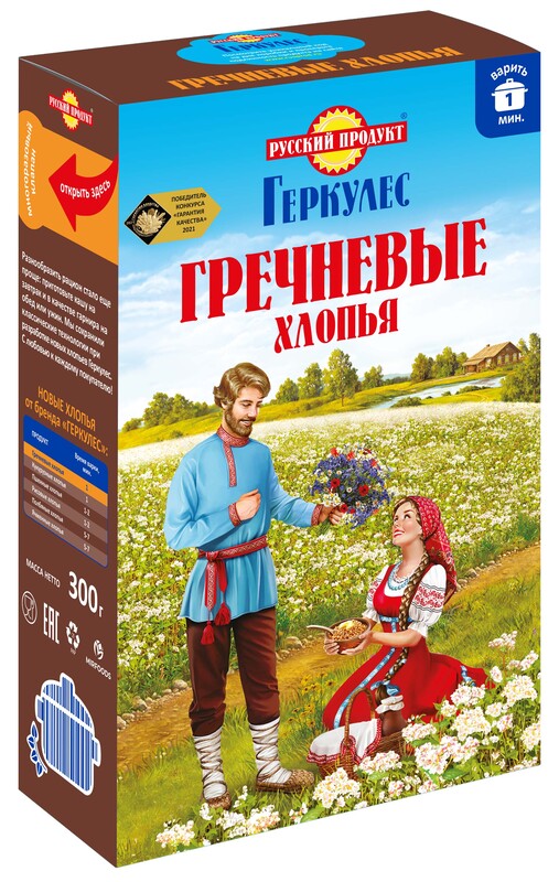 Геркулес "Гречневые хлопья" производится из цельной крупы, а благодаря современной обработке этой культуры в продукте сохраняются все полезные вещества. Гречиха содержит магний и аминокислоты, которые укрепляют нервную и мышечную системы. Кашу из гречневых хлопьев быстрее и проще готовить, чем из цельной крупы, ее можно употреблять как самостоятельное блюдо, так и в качестве гарнира.