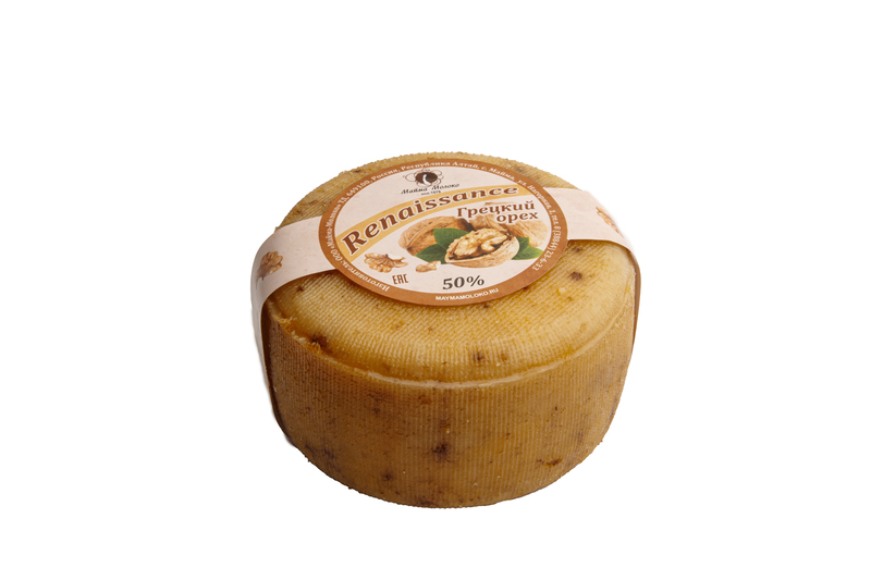 Внешний вид: Корка ровная, тонкая, без повреждений и толстого подкоркового слоя; Цвет: От слабо-желтого до желтого, равномерно по всей массе; Вкус: Выраженный сырный, кисловато-сливочный, с наличием легкой пряности и выраженный вкус грецкого ореха; Запах: Выраженный сырный, кисловато-сливочный, с наличием легкой пряности и ароматом грецкого ореха.