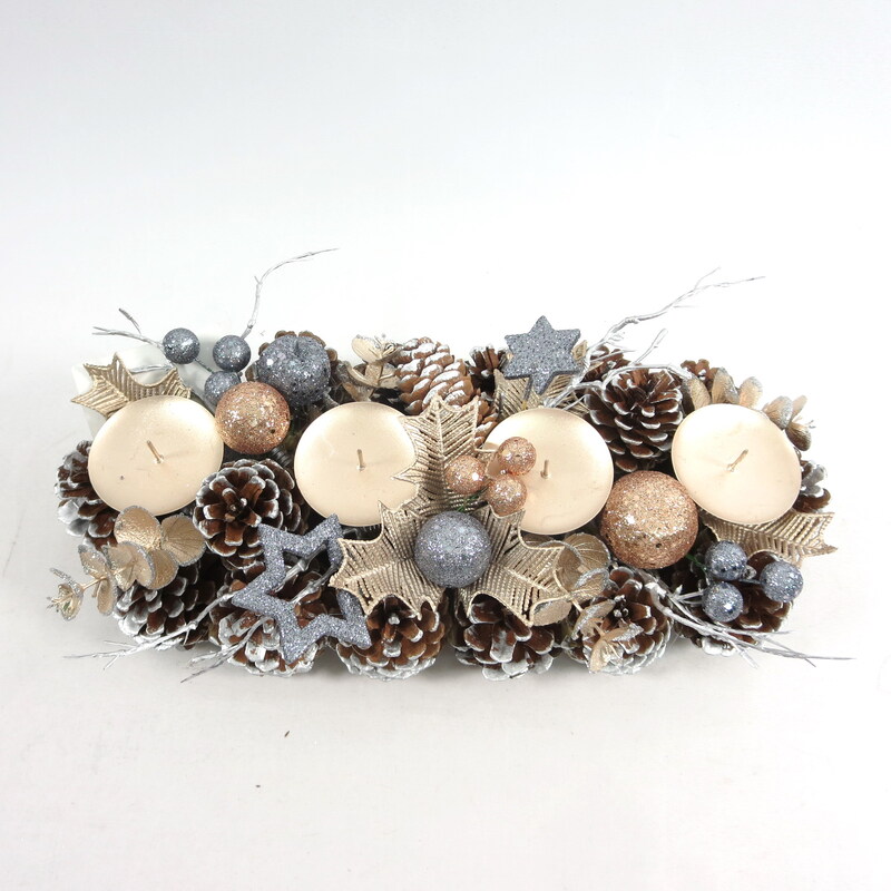 Подсвечник-венок с красным декором на 4 свечи Decormaker