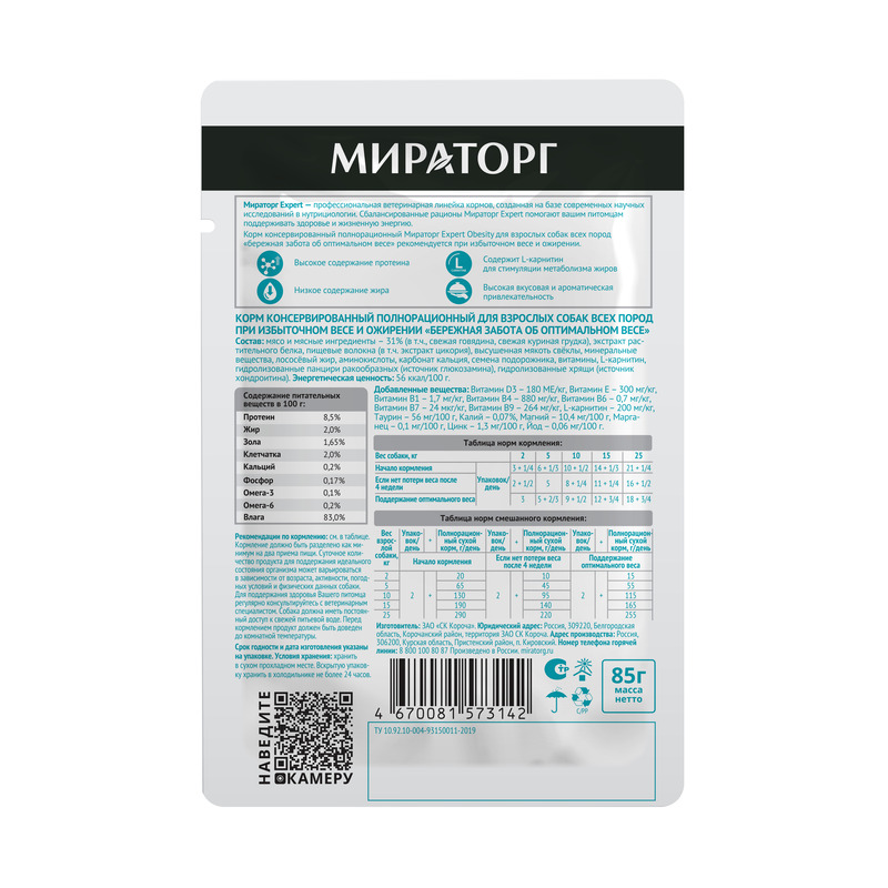 Мираторг Expert - профессиональная линейка кормов, созданная на базе современных научных исследований в нутрициологии. Сбалансированные рационы Мираторг Expert помогают вашим питомцам поддерживать здоровье и жизненную энергию. Obesity – ветеринарная диета, для эффективного снижения веса и поддержания оптимальной массы тела.