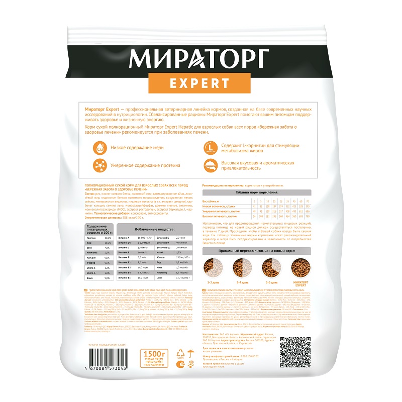 Мираторг Expert - профессиональная линейка кормов, созданная на базе современных научных исследований в нутрициологии. Сбалансированные рационы Мираторг Expert помогают вашим питомцам поддерживать здоровье и жизненную энергию. Hepatic – ветеринарная диета с низким содержанием меди, направленная для поддержания работы печени.