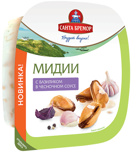 вода питьевая, мясо мидии* вареное, соль, регуляторы кислотности: уксусная кислота ледяная, лимонная кислота; сахар. Продукт может содержать незначительное количество компонентов, используемых при производстве других продуктов (горчица, рыба, ракообразные, яичные продукты, злаки).