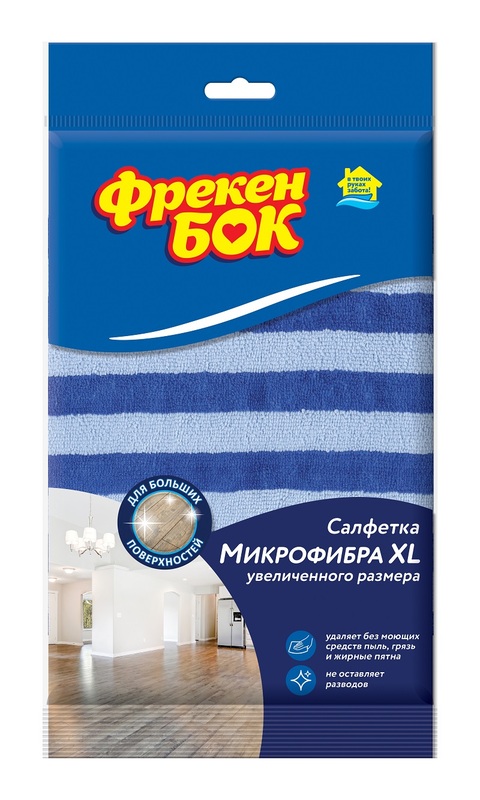 Универсальная салфетка из микрофибры Фрекен БОК увеличенного размера для генеральной уборки и мытья полов. Благодаря сверхтонкой структуре и составу волокна салфетки проникают в труднодоступные места и как магнит собирают максимальное количество пыли и грязи, а также эффективно впитывают масло и жир, нейтрализуя их действие. Размер салфетки 50x60 см. Срок службы не менее 2-х лет при интенсивном использовании. Возможна ручная и машинная стирка при низких температурах.