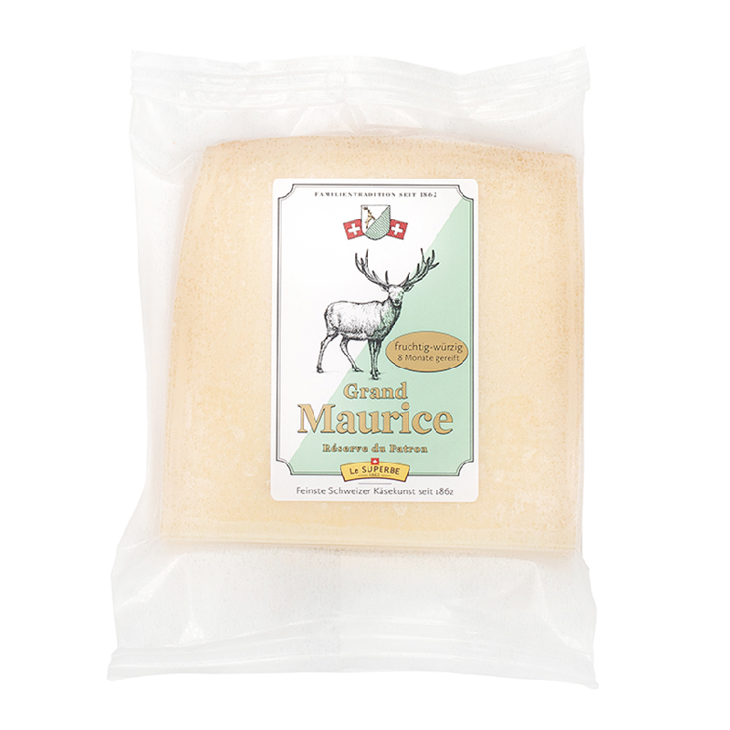 Сыр Grand Maurice Réserve du Patron (Гранд Морис) - это сыр созданный для особых случаев будь то праздник, посиделки с лучшими друзьями или встреча дорогих гостей. Основатель Lustenberger & Dürst Морис Лустенбергер охранял рецептуру этого сыра как настоящую жемчужину. Сыр Гранд Морис обладает благородным, сбалансированным, фруктовым вкусом, он будоражит вкусовые рецепторы, как никакой другой сыр. Созданный страстным сырым мастером Морисом Люстенбергером, рецепт для сыра Гранд Морис передавался в семья от поколения к поколению. И сейчас, производство этого великолепного сыра со столь охраняемым рецептом возобновляется, а сыр представляется как новинка. Сыр Гранд Морис производится по традиционному семейному рецепту с использованием свежего молока в одной из местных деревенских сыроварен. Сыр ручной работы созревает традиционным способом в течение 8 месяцев под пристальным наблюдением мастеров-сыроделов и приобретает уникальный, фруктовый и острый вкус.