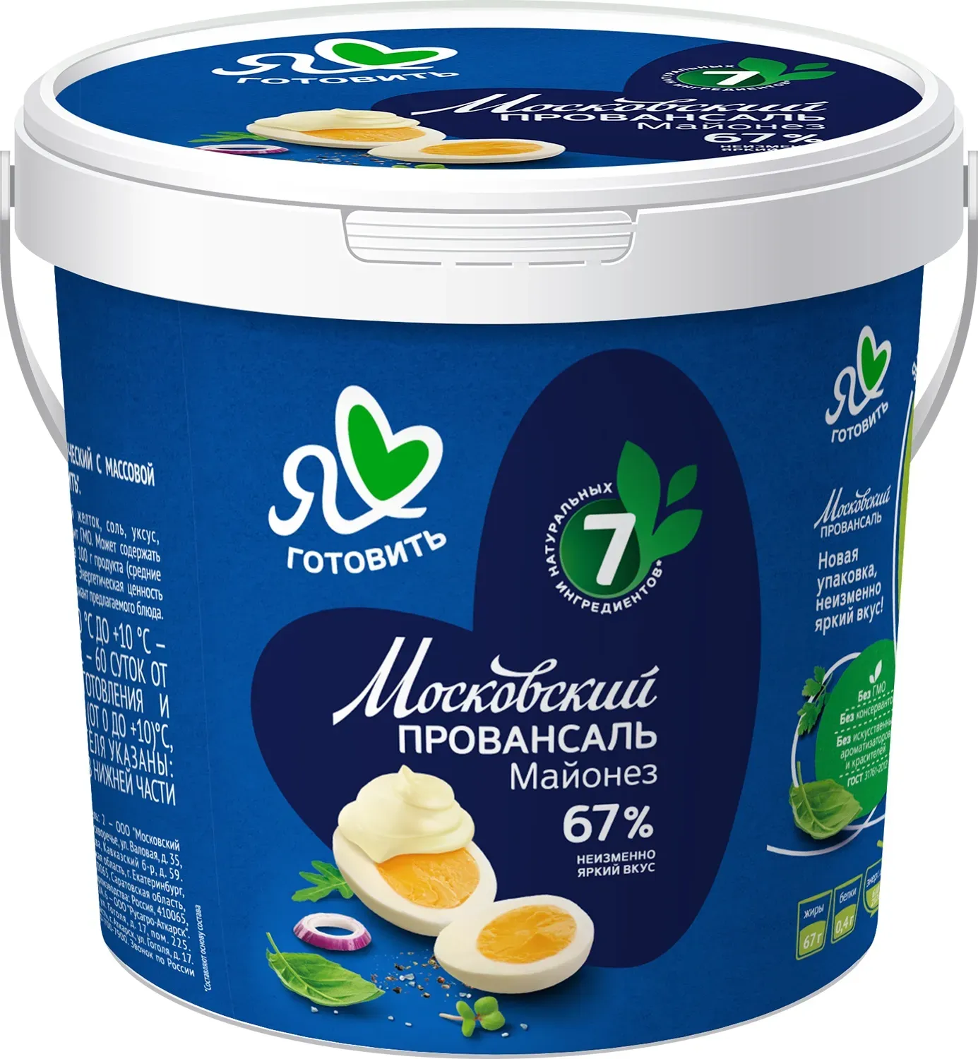 Майонез «Я люблю готовить» Московский провансаль – легендарный майонез, любимый многими поколениями. Производится из натуральных ингредиентов и обладает идеально сбалансированным вкусом и выраженной уксусной нотой. Эталон вкуса настоящего провансаля! Он придаст завершенность и яркий вкус салатам, основным блюдам и закускам. Бренд «Я люблю готовить» – компас в мире современной кулинарии и питания, который вдохновляет готовить с аппетитом и жить с аппетитом. Продукты и кулинарные ингредиенты бренда «Я люблю готовить» обогащают вкус еды и легко превращают процесс готовки в уникальный опыт. Яркий и насыщенный вкус блюд с продуктами бренда «Я люблю готовить» преобразит ваше настроение.