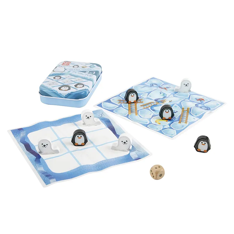 Используемые детали: игровое поле со змеями, одна фишка пингвина, одна фишка печати, один кубик Правила игры: По очереди бросайте кубики. Игрок, выбрасывающий наибольшее число, ходит первым. Перемещайте фишку по квадратам в соответствии с выпавшим числом. Вы можете подняться на вершину лестницы, когда приземлитесь на их основания, но если вы приземлитесь на голову змеи, вам придется соскользнуть обратно к ее хвосту. Первый игрок, достигший конца, становится победителем!