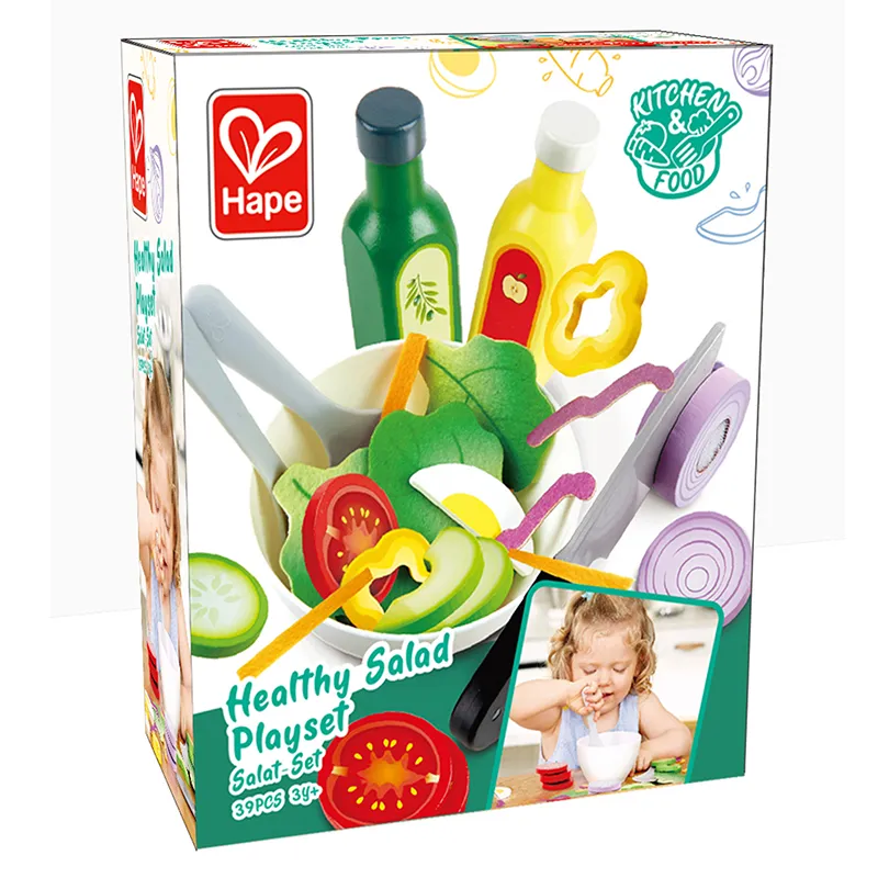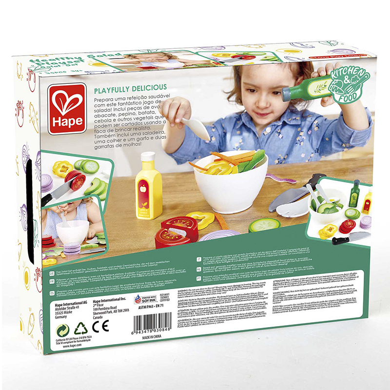Этот восхитительный игровой набор помогает детям познакомиться с салатом и овощами и вдохновляет их на формирование привычек здорового питания. Он наполнен смесью красочных ингредиентов для салата, которые можно нарезать, чтобы юные повара могли притвориться, что играют! Поощряйте любознательность и дайте своим детям возможность развивать воображение, развивать свои языковые и социальные навыки, играя с этим реалистичным набором салатов самого высокого качества! Объедините этот набор с другими наборами еды, чтобы устроить веселый праздник. Этот набор игрушечных салатов добавляет реалистичности игре! Он отлично подходит для развития мелкой моторики и зрительно-моторной координации путем нарезки и сортировки ингредиентов, а также их смешивания. Самоклеящиеся выступы на овощах издают хруст при нарезке, а ингредиенты имеют закругленные края, удобные для маленьких пальчиков. В игровой набор для здорового салата входят деревянные кусочки яйца, авокадо, огурца, помидора, лука, перца, полоски моркови и лука, безопасный для детей игровой нож, салатница, ложка, вилка и заправка.