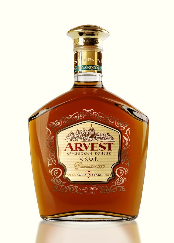 Армянские коньячные дистилляты из винограда сортов кангун, ркацители, воскеат, бананц, вода подготовленная, натуральная карамель. Выдержка в бочках из кавказского дуба не менее 5 лет