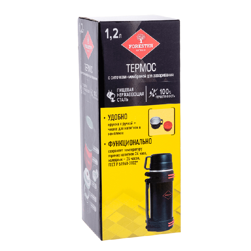 Термос вакуумный 1,2 л с 2 кружками и мембраной для заварки Forester Mobile Китай